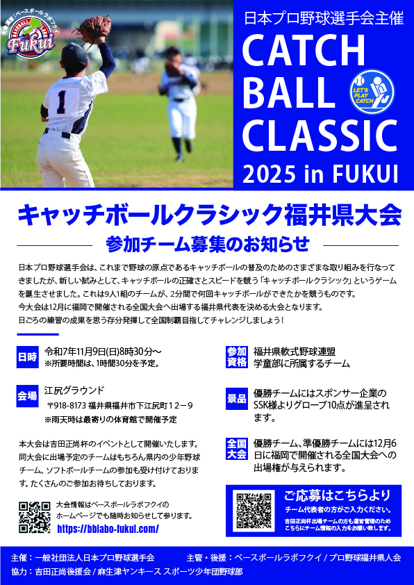 ※本大会は吉田正尚杯のイベントとして開催いたします。同大会に出場予定のチームはもちろん県内の少年野球チーム、ソフトボールチームの参加も受け付けております。たくさんのご参加お待ちしております。